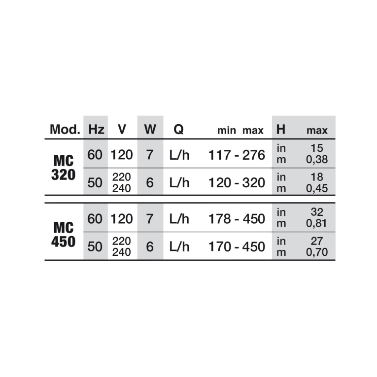 230V, 6W, adjustable delivery rate approx. 170 - 450 l/h, max. 0.7m delivery height, dimensions approx. 49x38mm, height approx. 57mm without hose connection piece, delivery including coarse dirt filter